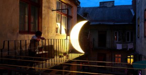 Private Moon, a project by a Russian artist name Leonid Tishkov. Leonid brought his fairy tale Private Moon traveled several place and capture his moment with the moon. In an interview, Leonid said, “Each time the moon reveals more space…